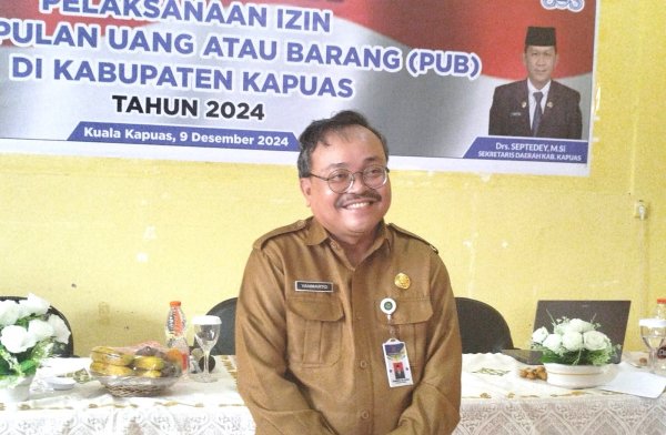 KAPUAS - Dinas Sosial (Dinsos) Kabupaten Kapuas sosialisasi izin Pengumpulan Uang atau Barang (PUB) di Aula Kantor Disdagperinkop UKM Kapuas, Senin (09/12/2024),