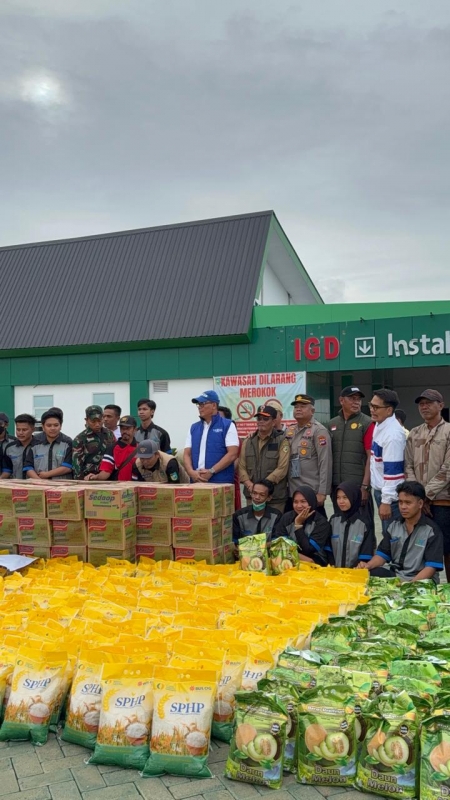 Logistik berupa beras, mie instan, telur ayam ras, dan air mineral itu didrop di halaman RSUD H Darlan Ismail.